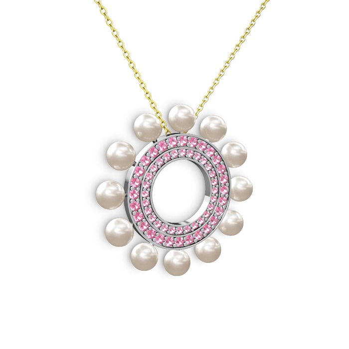 Inci ve pembe kuvars 925 ayar gümüş kolye (40 cm gümüş rolo zincir)
