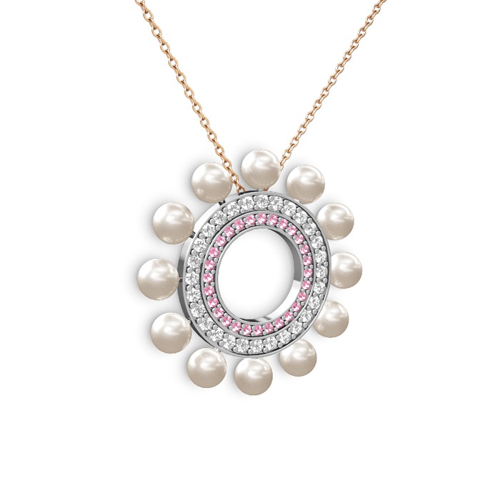 Inci, pembe kuvars ve pırlanta 18 ayar beyaz altın kolye (0.2464 karat, 40 cm rose altın rolo zincir)