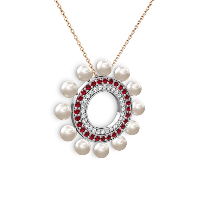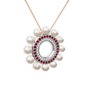 Inci, pırlanta ve garnet 8 ayar beyaz altın kolye (0.42 karat, 40 cm rose altın rolo zincir)