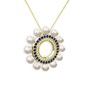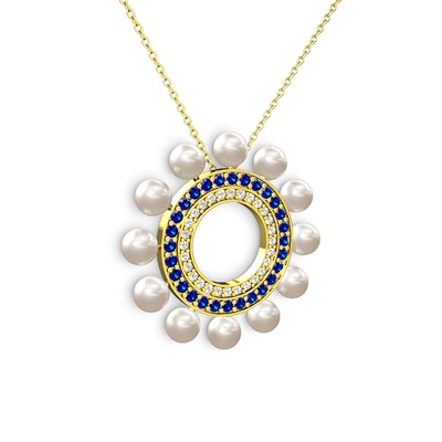 Inci, pırlanta ve lab safir 925 ayar altın kaplama gümüş kolye (0.42 karat, 40 cm gümüş rolo zincir)