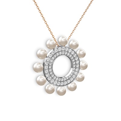 Inci, pırlanta ve swarovski 14 ayar beyaz altın kolye (0.42 karat, 40 cm rose altın rolo zincir)