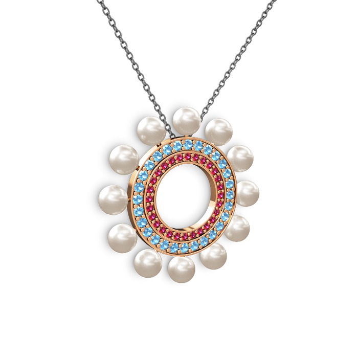 Inci, rodolit garnet ve akuamarin 8 ayar rose altın kolye (40 cm gümüş rolo zincir)