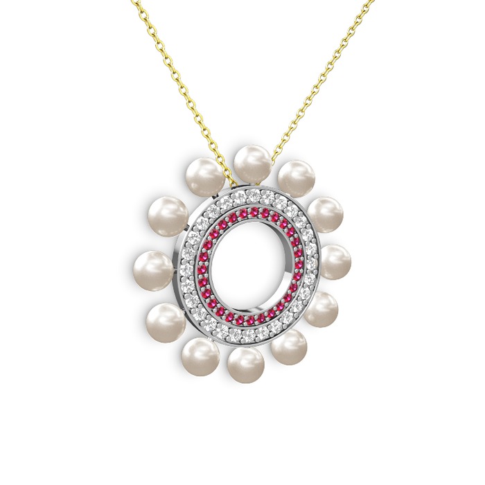 Inci, rodolit garnet ve pırlanta 925 ayar gümüş kolye (0.2464 karat, 40 cm altın rolo zincir)