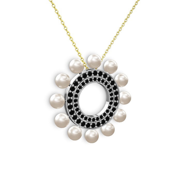 Inci ve siyah zirkon 18 ayar beyaz altın kolye (40 cm altın rolo zincir)