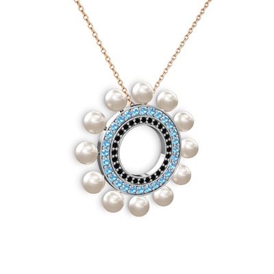Inci, siyah zirkon ve akuamarin 925 ayar gümüş kolye (40 cm rose altın rolo zincir)