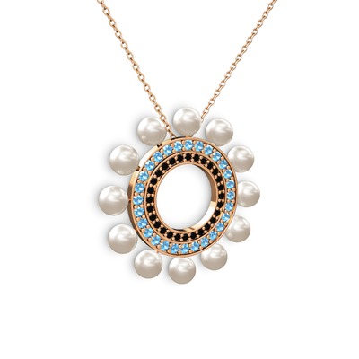 Inci, siyah zirkon ve akuamarin 925 ayar rose altın kaplama gümüş kolye (40 cm rose altın rolo zincir)