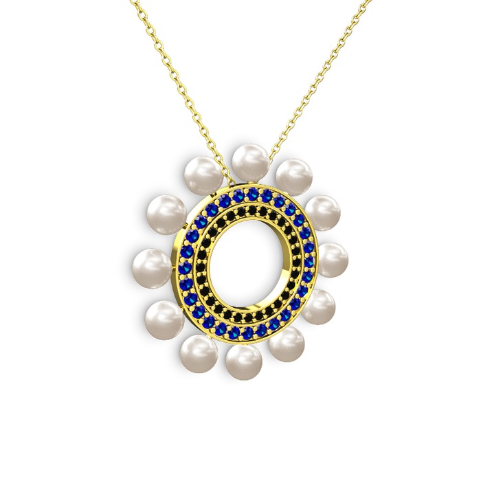 Inci, siyah zirkon ve lab safir 18 ayar altın kolye (40 cm altın rolo zincir)