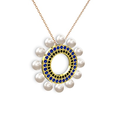 Inci, siyah zirkon ve lab safir 18 ayar altın kolye (40 cm rose altın rolo zincir)