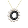 Inci ve siyah zirkon 925 ayar siyah rodyum kaplama gümüş kolye (40 cm altın rolo zincir)