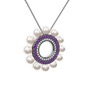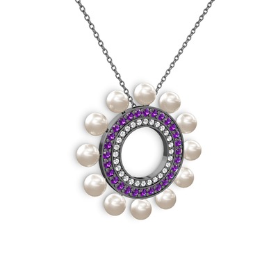 Inci, swarovski ve ametist 925 ayar siyah rodyum kaplama gümüş kolye (40 cm gümüş rolo zincir)