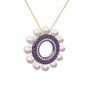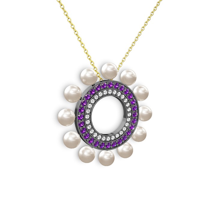 Inci, swarovski ve ametist 925 ayar siyah rodyum kaplama gümüş kolye (40 cm gümüş rolo zincir)