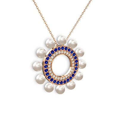 Inci, swarovski ve lab safir 14 ayar rose altın kolye (40 cm rose altın rolo zincir)