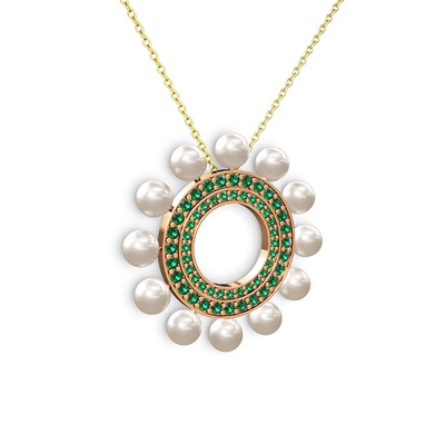 Inci ve yeşil kuvars 14 ayar rose altın kolye (40 cm altın rolo zincir)
