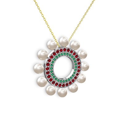 Inci, yeşil kuvars ve garnet 925 ayar gümüş kolye (40 cm altın rolo zincir)