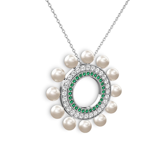 Inci, yeşil kuvars ve pırlanta 18 ayar beyaz altın kolye (0.2464 karat, 40 cm gümüş rolo zincir)