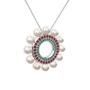 Inci, yeşil kuvars ve rodolit garnet 8 ayar beyaz altın kolye (40 cm gümüş rolo zincir)