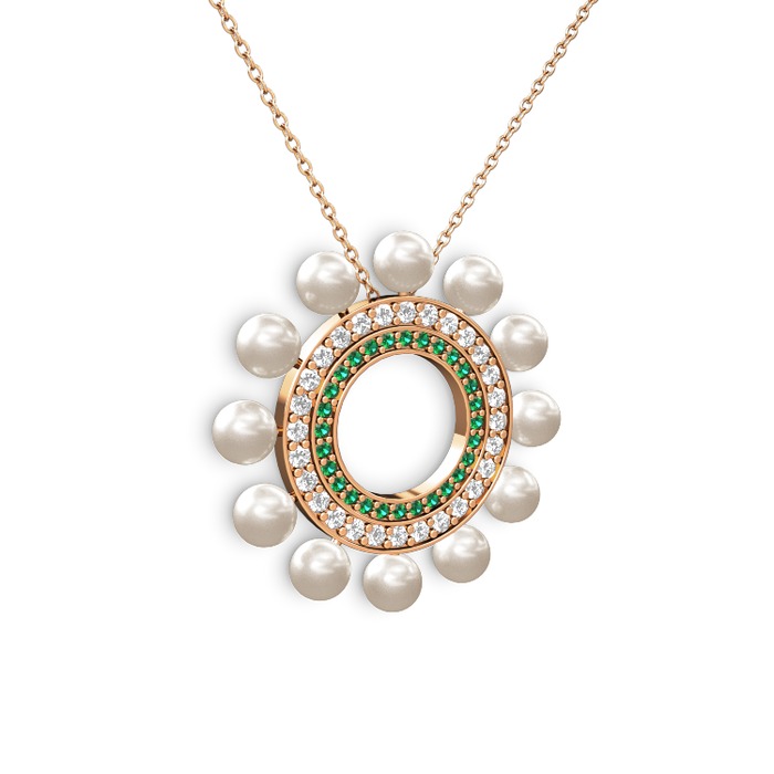 Inci, yeşil kuvars ve swarovski 14 ayar rose altın kolye (40 cm rose altın rolo zincir)