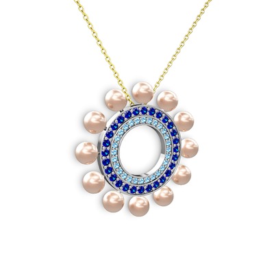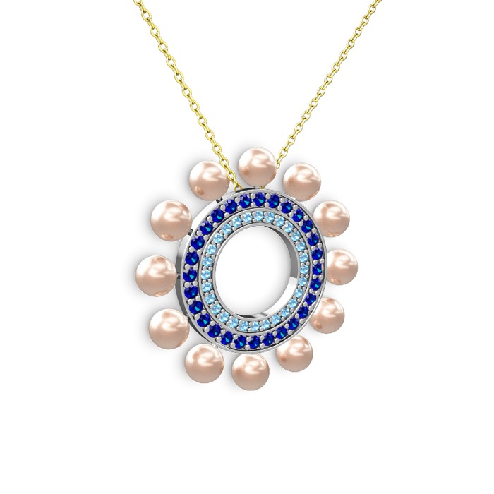 Pembe inci, akuamarin ve lab safir 14 ayar beyaz altın kolye (40 cm gümüş rolo zincir)