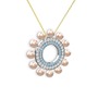 Pembe inci, akuamarin ve pırlanta 14 ayar beyaz altın kolye (0.2464 karat, 40 cm gümüş rolo zincir)