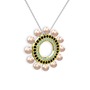 Pembe inci, akuamarin ve siyah zirkon 8 ayar altın kolye (40 cm beyaz altın rolo zincir)