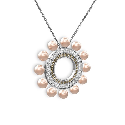 Pembe inci, dumanlı kuvars ve pırlanta 18 ayar beyaz altın kolye (0.2464 karat, 40 cm gümüş rolo zincir)