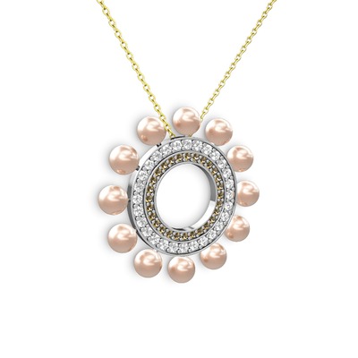 Pembe inci, dumanlı kuvars ve pırlanta 925 ayar gümüş kolye (0.2464 karat, 40 cm altın rolo zincir)