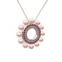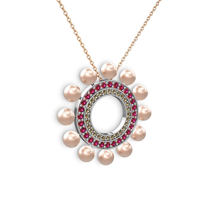 Pembe inci, dumanlı kuvars ve rodolit garnet 8 ayar beyaz altın kolye (40 cm gümüş rolo zincir)