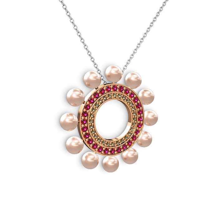 Pembe inci, dumanlı kuvars ve rodolit garnet 925 ayar rose altın kaplama gümüş kolye (40 cm gümüş rolo zincir)