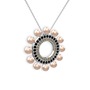 Pembe inci, dumanlı kuvars ve siyah zirkon 14 ayar beyaz altın kolye (40 cm beyaz altın rolo zincir)