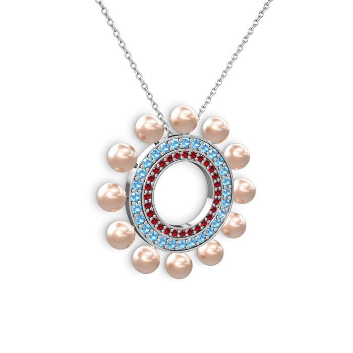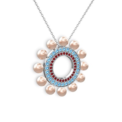 Pembe inci, garnet ve akuamarin 8 ayar beyaz altın kolye (40 cm beyaz altın rolo zincir)