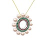 Pembe inci, garnet ve yeşil kuvars 8 ayar beyaz altın kolye (40 cm altın rolo zincir)