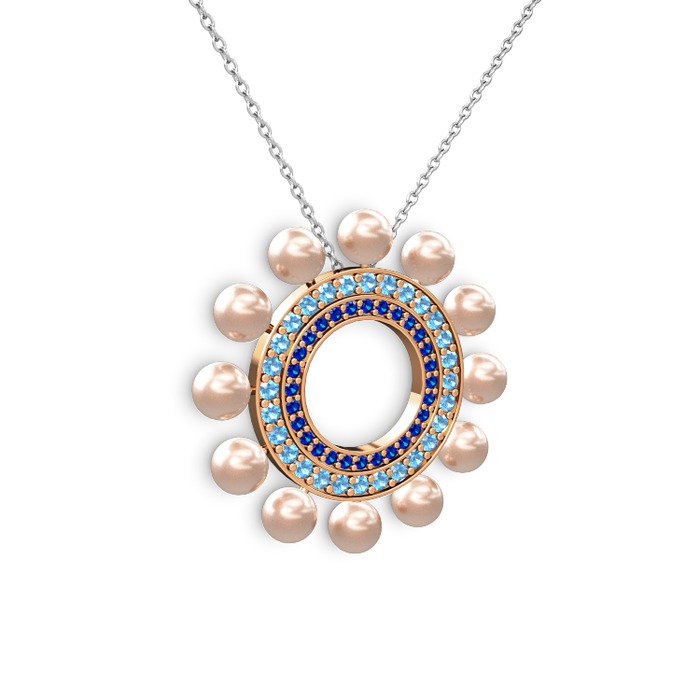 Pembe inci, lab safir ve akuamarin 14 ayar rose altın kolye (40 cm beyaz altın rolo zincir)