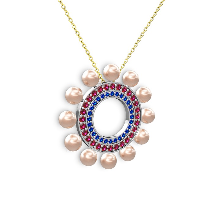 Pembe inci, lab safir ve rodolit garnet 18 ayar beyaz altın kolye (40 cm gümüş rolo zincir)