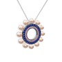 Pembe inci, pembe kuvars ve lab safir 925 ayar siyah rodyum kaplama gümüş kolye (40 cm gümüş rolo zincir)