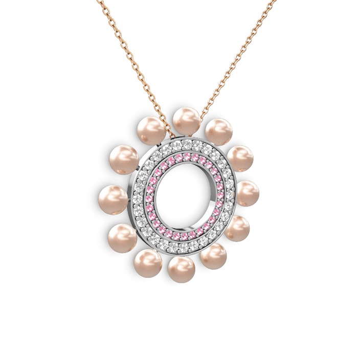 Pembe inci, pembe kuvars ve pırlanta 8 ayar beyaz altın kolye (0.2464 karat, 40 cm rose altın rolo zincir)