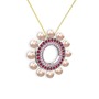 Pembe inci, pembe kuvars ve rodolit garnet 18 ayar beyaz altın kolye (40 cm gümüş rolo zincir)