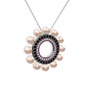 Pembe inci, pembe kuvars ve siyah zirkon 925 ayar siyah rodyum kaplama gümüş kolye (40 cm beyaz altın rolo zincir)