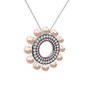 Pembe inci, pembe kuvars ve swarovski 925 ayar siyah rodyum kaplama gümüş kolye (40 cm gümüş rolo zincir)
