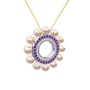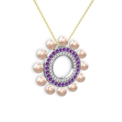 Pembe inci, pırlanta ve ametist 8 ayar beyaz altın kolye (0.42 karat, 40 cm altın rolo zincir)