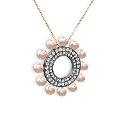 Pembe inci ve pırlanta 925 ayar siyah rodyum kaplama gümüş kolye (0.6664 karat, 40 cm gümüş rolo zincir)