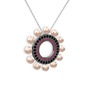 Pembe inci, rodolit garnet ve siyah zirkon 925 ayar siyah rodyum kaplama gümüş kolye (40 cm beyaz altın rolo zincir)