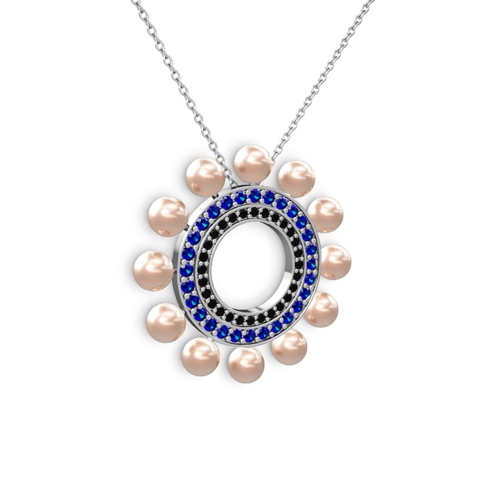 Pembe inci, siyah zirkon ve lab safir 8 ayar beyaz altın kolye (40 cm beyaz altın rolo zincir)