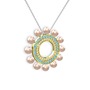 Pembe inci, swarovski ve akuamarin 18 ayar altın kolye (40 cm beyaz altın rolo zincir)