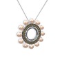 Pembe inci, swarovski ve dumanlı kuvars 925 ayar siyah rodyum kaplama gümüş kolye (40 cm beyaz altın rolo zincir)