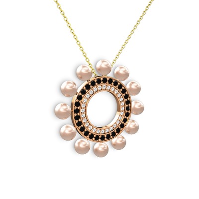 Pembe inci, swarovski ve siyah zirkon 18 ayar rose altın kolye (40 cm altın rolo zincir)