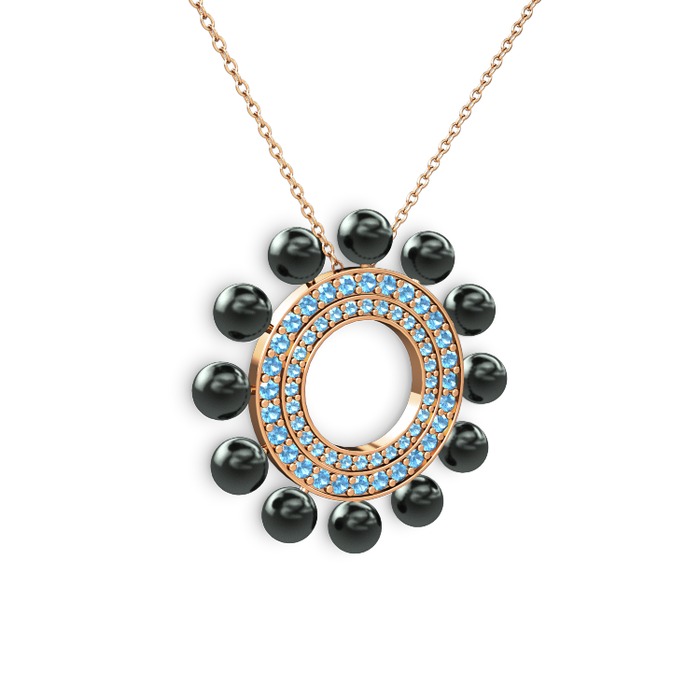 Siyah inci ve akuamarin 18 ayar rose altın kolye (40 cm rose altın rolo zincir)