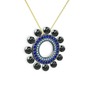 Siyah inci, akuamarin ve lab safir 925 ayar siyah rodyum kaplama gümüş kolye (40 cm gümüş rolo zincir)