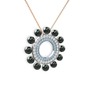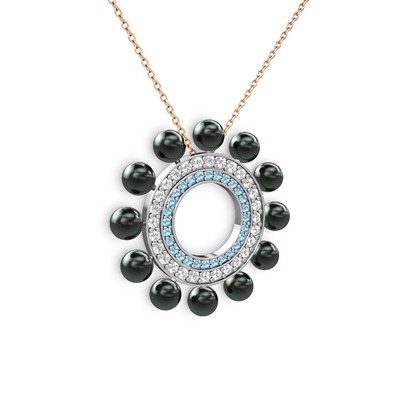 Siyah inci, akuamarin ve pırlanta 8 ayar beyaz altın kolye (0.2464 karat, 40 cm rose altın rolo zincir)