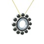 Siyah inci, akuamarin ve siyah zirkon 18 ayar beyaz altın kolye (40 cm altın rolo zincir)