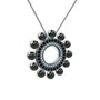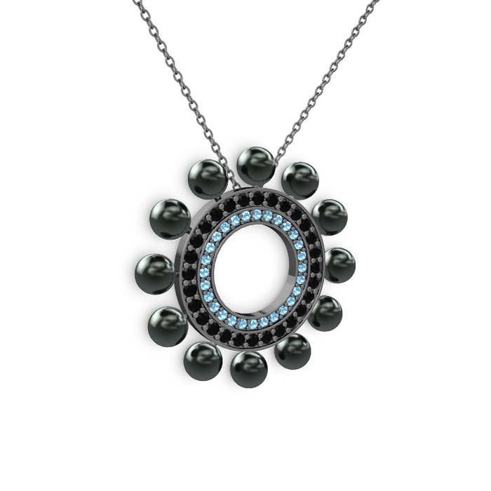 Siyah inci, akuamarin ve siyah zirkon 925 ayar siyah rodyum kaplama gümüş kolye (40 cm gümüş rolo zincir)